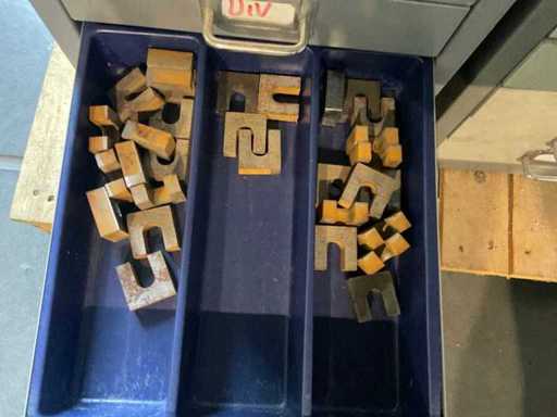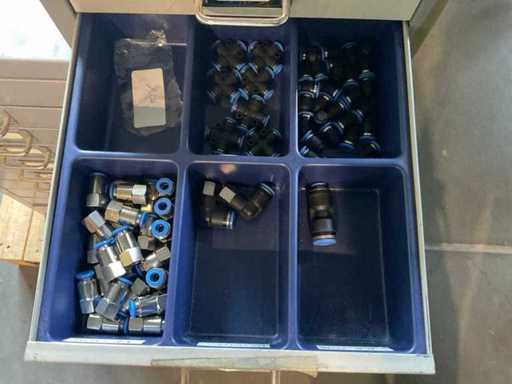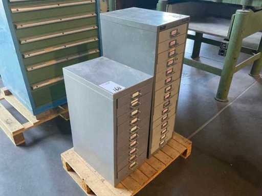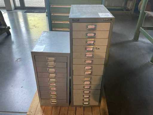 1x 15 szuflad lxbxh 28x48x86cm, 1x 10 szuflad lxbxh 28x48x61cm. Zawiera elementy takie jak sprężone powietrze, tuleje zamkowe, elementy zaciskowe