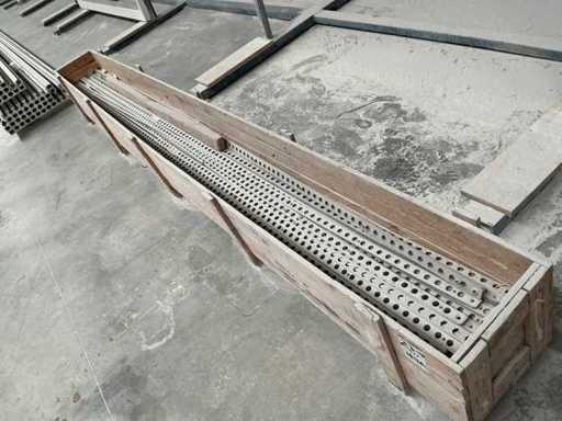 W tym drewniana skrzynia z żelazem taśmowym oraz partia aluminiowych łopat przesuwanych do transportu chłodniczego o długości około 700 cm.