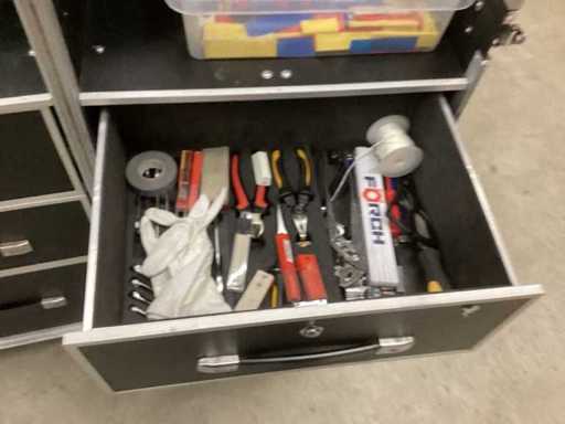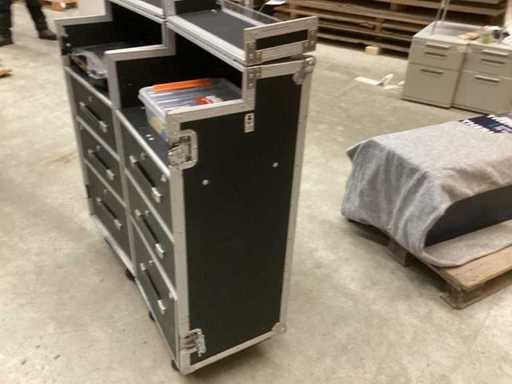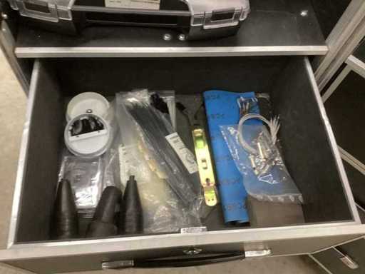 Targi montażowe wózka narzędziowego częściowo z zawartością, rolowane