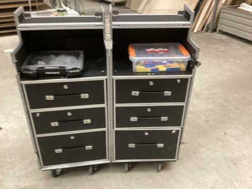 Rolowalne, 4 obrotowe kółka, 6 szuflad częściowo z zawartością
