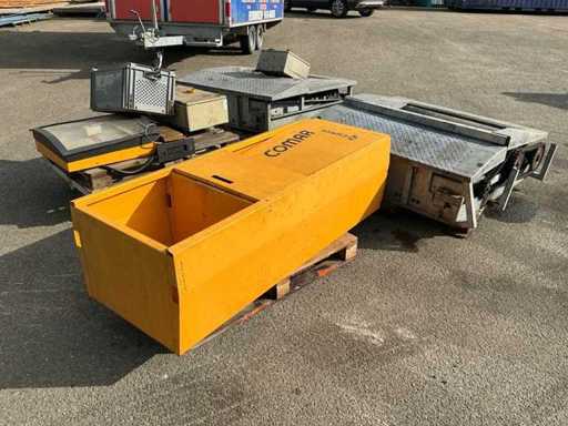 Dostępny wózek widłowy, palety i/lub jarzma magazynowe, widoczne na zdjęciu.