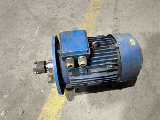 Używany silnik elektryczny, wycofany z eksploatacji. Widoczne oznaki użytkowania. Tabliczka z nazwiskiem jest widoczna i czytelna.
