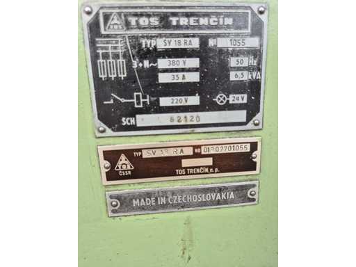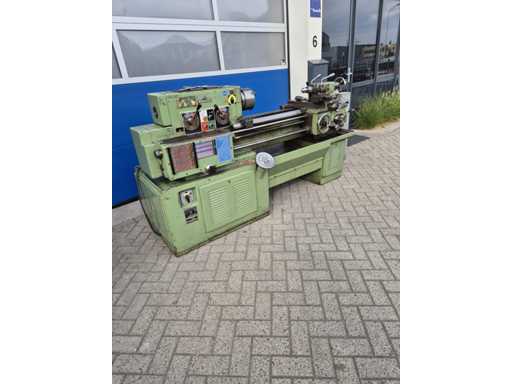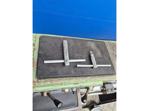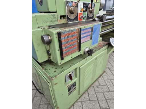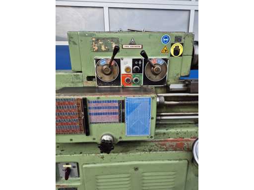 Tokarka do metalu TOS SV-18 RA jest w bardzo schludnym stanie i kompletna, jak pokazano na zdjęciach. Maszyna jest natychmiast gotowa do użycia. Wyposażony w odległość między kłami 850 mm, maksymalną średnicę toczenia 380 mm, otwór 42 mm i zakres prędkości od 14 do 2800 obr./min. Waga wynosi około 2000 kg. Pod względem technicznym, optycznym i ogólnym tokarka jest w dobrym stanie i dlatego może być natychmiast używana.