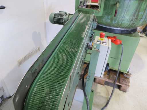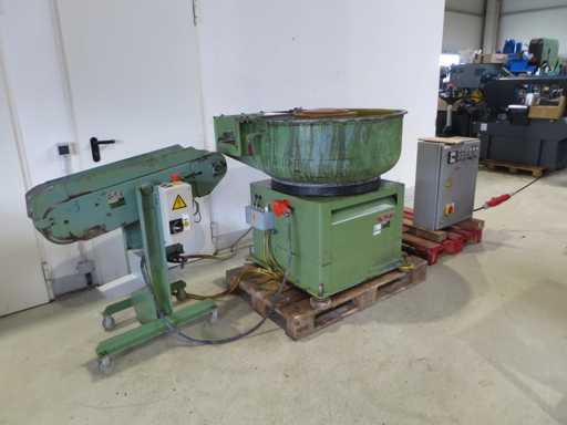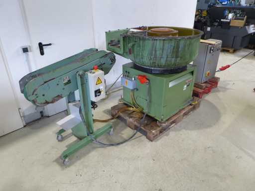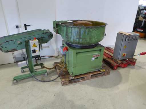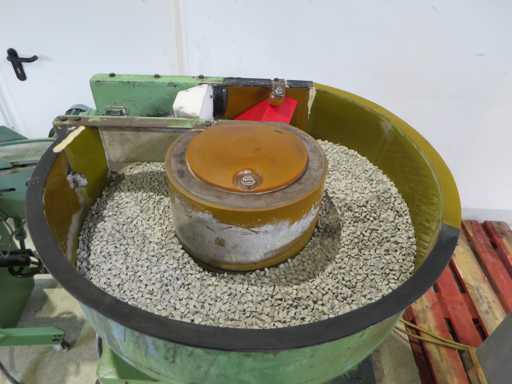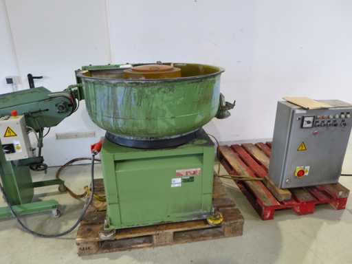 Maszyna do masowego wykańczania z jednostką przenośniczkową>br>Zobacz zdjęcia>br>Zewnętrzna średnica kontenera 1250 mm>br>średnica/ wysokość kontenera 1000 / 350 mm>br>zakres prędkości 920 / 1415 obr.>br>Napięcie robocze 380 V>br>objętość 125 litrów>br>Moc napędu 1,9 kW>br>Waga maszyny ok. 600 kg>br>Wymiary L x sześć x H 1,4 x 0,9 x 1,5 m