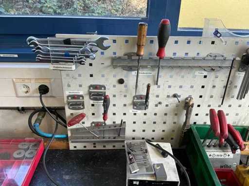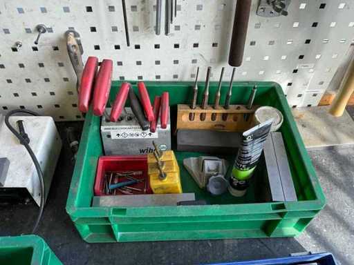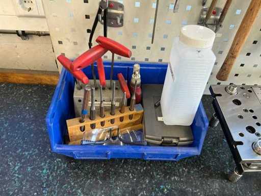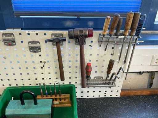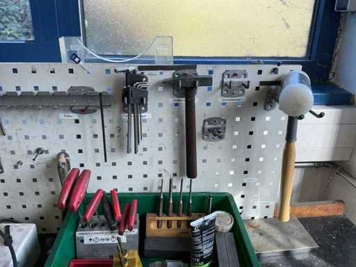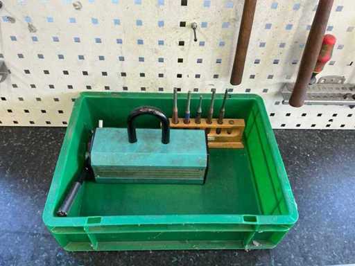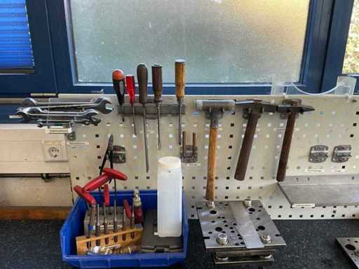 w tym narzędzia ręczne i 2x imadła maszynowe – szerokość szczęki 125 mm