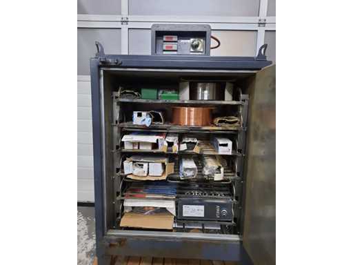 Szafa do suszenia elektrod i drutu spawalniczego Weldline MW6 jest w dobrym stanie i kompletna, jak pokazano na zdjęciach. Maszyna jest natychmiast gotowa do użycia. Jest to używany piec suszący marki Weldline (Air Liquide), który jest dostarczany z zawartością. Szafa działa na 380 V i należy do kategorii akcesoriów spawalniczych. Maszyna jest w dobrym stanie technicznym, optycznym i ogólnym.