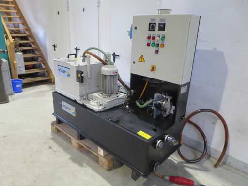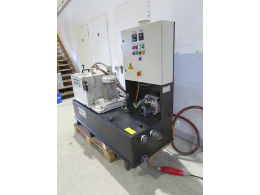 Wirówka z uzdatnianiem wody >br> - Nr fabryczny : 22126799>br> - Maszyna WŁĄCZONA: 5 144,65 h>br> - Przełącznik timera>br>Średnica bębna 382 mm>br>Wysokość bębna 250 mm>br>Ilość nalewu 40 kg>br>Grubość ścianki bębna 13 mm>br>Prędkość bębna 2850 obr.>br>Wydajność 800 l/h>br>Napięcie robocze 400 V>br>Całkowite zapotrzebowanie na moc 5,0 kW>br> masa maszyny ok. 500 kg>br> Wymagania dotyczące przestrzeni ok. 1,90 x 0,70 x 1,65 m