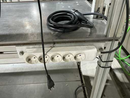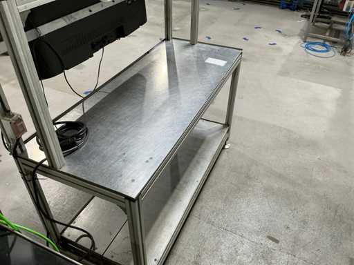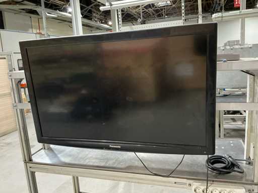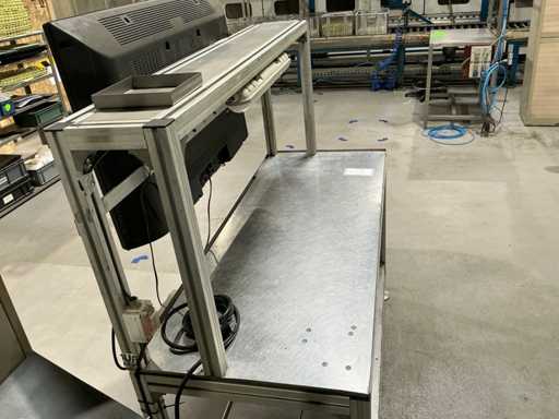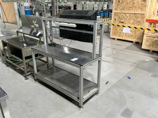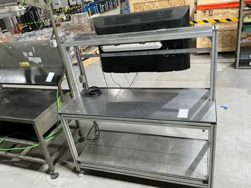 Industrial workstation. It incorporates a Panasonic LCD monitor model TH-42LRG20E (42"), with integrated electrical connection and lower support tray. Ideal for process control or monitoring tasks.