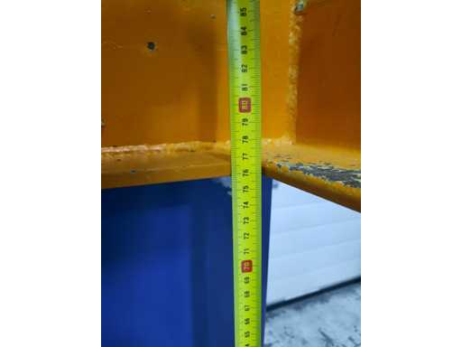 Hydrauliczny stół podnośny WTT 40.07.10.S jest w dobrym stanie i kompletny, jak pokazano na zdjęciach. Maszyna jest natychmiast gotowa do użycia. Wyposażony w udźwig 1000 kg, maksymalną wysokość podnoszenia 770 mm i przystosowany do europalet. Stół podnośny jest mobilny, pracuje hydraulicznie z mocą silnika 1,1 kW i jest napędzany napięciem 230 V. Pod względem technicznym, optycznym i ogólnym maszyna jest w dobrym stanie i dlatego może być natychmiast użyta.