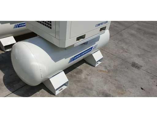 Super tłumiona sprężarka śrubowa, zasilanie 380 V, 7,5 kW 10 KM z zbiornikiem 330 litrów, cyfrowy panel sterowania, inwerter do sterowania silnikiem, ciśnienie 8 bar, nigdy nie używany - 0 godzin, pakowany w