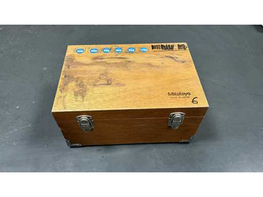 6 analogowych mikrometrów z bębnem mechanicznym • Zakresy: 0–150 mm (0–25 do 125–150) • Dokładność±0,01 mm • Oryginalna drewniana obudowa nr 6.