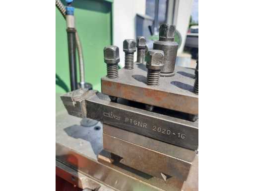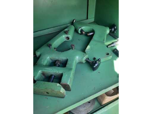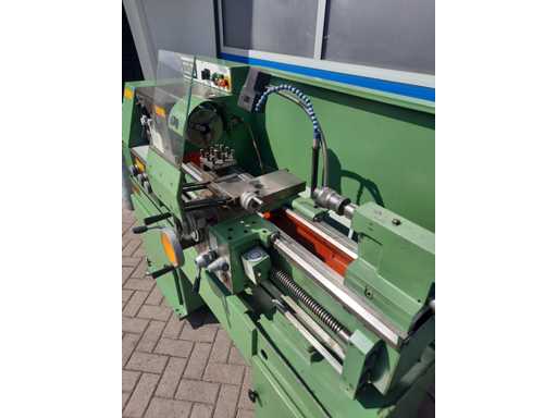 Uniwersalna tokarka do metalu ZMM SLIVEN 750TDC jest w dobrym stanie i kompletna, jak pokazano na zdjęciach. Maszyna jest natychmiast gotowa do użycia. Wyposażony w moc silnika 2,2 kW przy 380 woltach, zakres prędkości od 85 do 2000 obr./min, odległość między kłami 750 mm, maksymalną średnicę toczenia 310 mm i otwór 33 mm. Zbudowany w 1998 roku i ważący ok. 900 kg. Pod względem technicznym, optycznym i ogólnym tokarka jest w dobrym stanie i dlatego może być natychmiast używana.