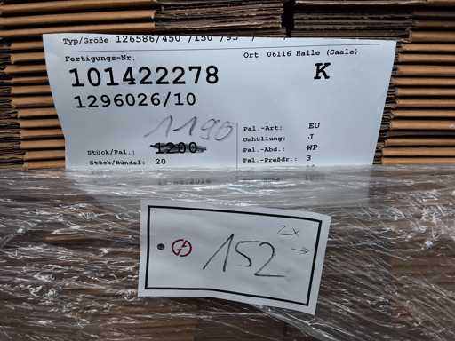 2 pallets of cardboard boxes, approx. 1650 pieces each 20 x in bunch, size per box 450x150x100 mm