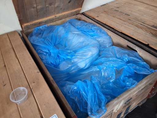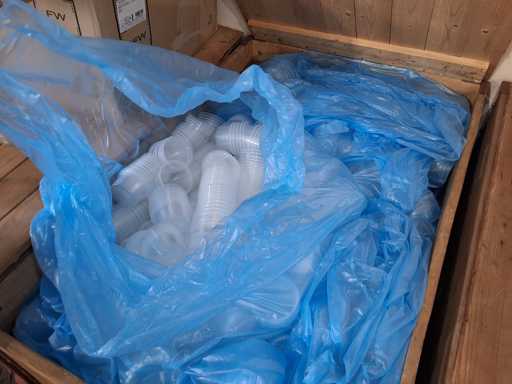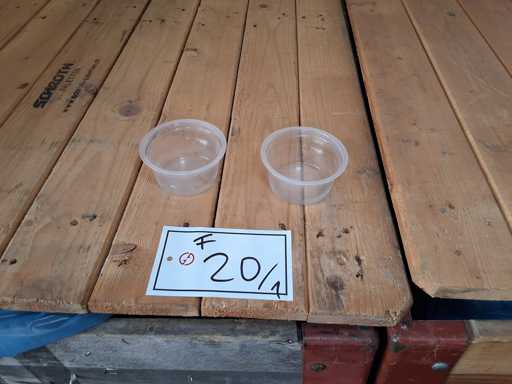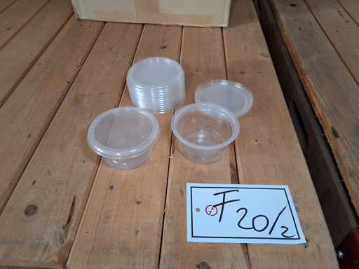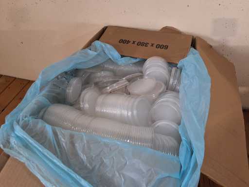 3 pallet cups + lids Greiner and Bartling, 3 SSB Euroboxes sealing cups approx. 200 ml with lid, approx. 8000 cups + 2122 lids transparent PP Ø 98.8 mm and cups Ø 95 mm, height approx. 48 mm