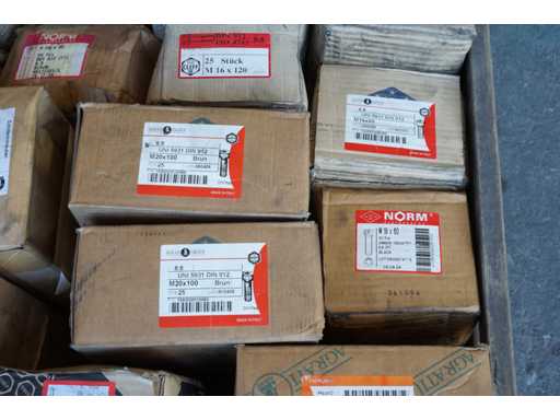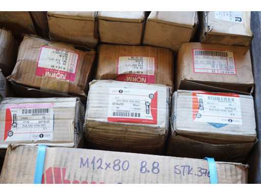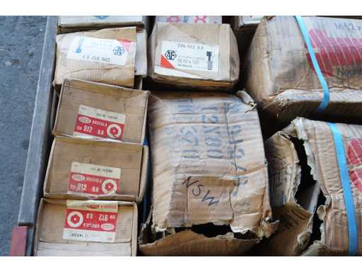 Lot de șuruburi imbus - DIN 912 cu rezistență 8.8. Greutatea totală (palet + șuruburi) este de 649 kg. Dimensiuni șuruburi de la M12 la M20