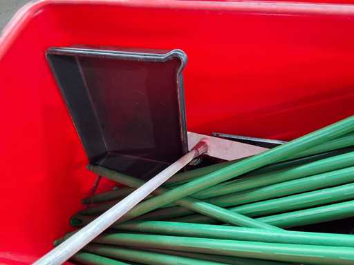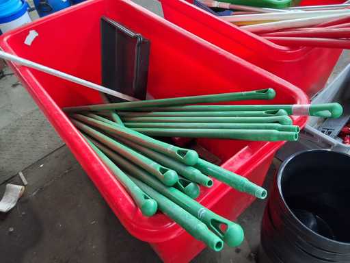 Mobile Environmental Box VIKAN with Devices, Mobile Environmental Box with Wheels Red with Contents, Various Tools + Trash Can Black