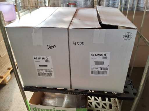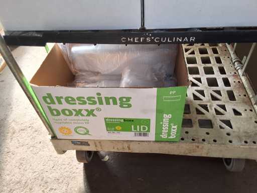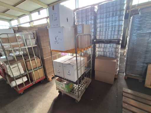 Trolley Dressing Box 621 with packaging material, 1 trolley with food packaging contents approx. 1000 PP cups 125 g, approx. 450 PP cups 250 g, approx. 1000 PP cups 500 g plus lid + other boxes