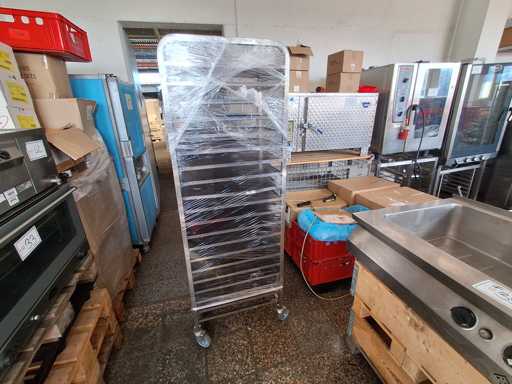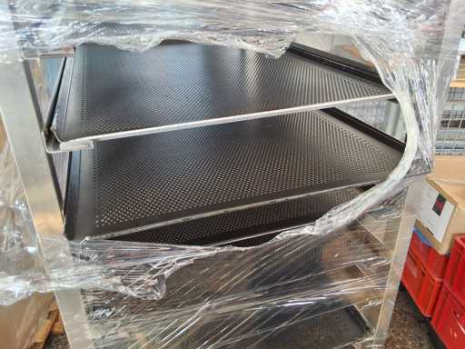 Baking tray trolley UNOX with trays, apparently NEW + Unused with 18 perforated baking trays