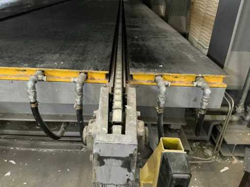 250 Ampere / echipat cu grupul hidraulic Fridle cu putere de 9,3 KW/ echipat cu rezistență la căldură Sceat, 80 litri, anul construcției 2011, temperatură maximă 90°C/ inclusiv gard de siguranță/ echipat cu alimentare automată a lanțului în 3 piese/ lățime a mesei
