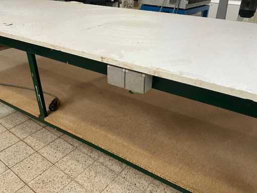 În versiune metalică și echipată cu placaj din formica în partea superioară și cu raft în partea de jos.