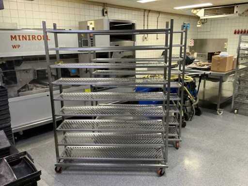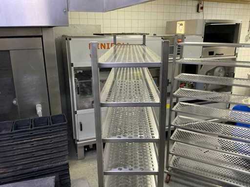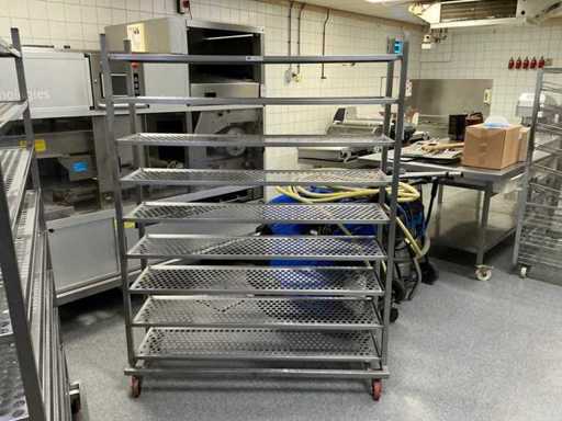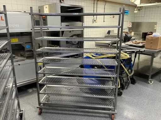 echipat cu 9 rafturi; echipată cu 4 roți rotative;