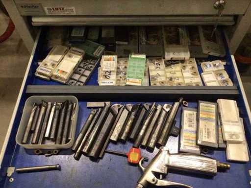 Cărucior de scule cu unelte, inserții din carbură solidă etc.