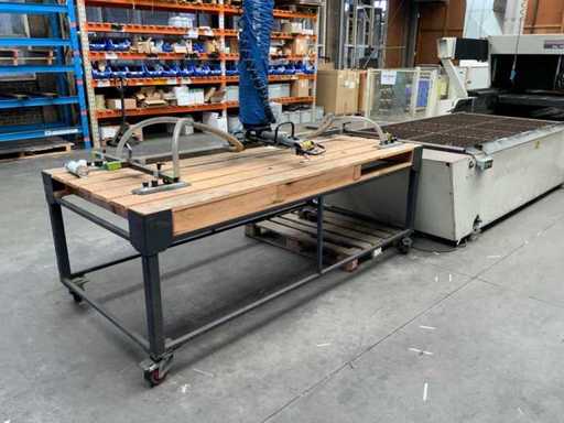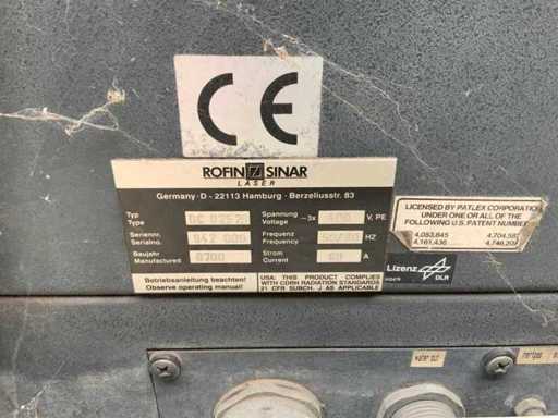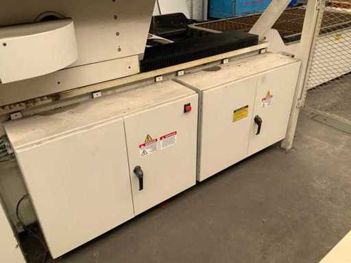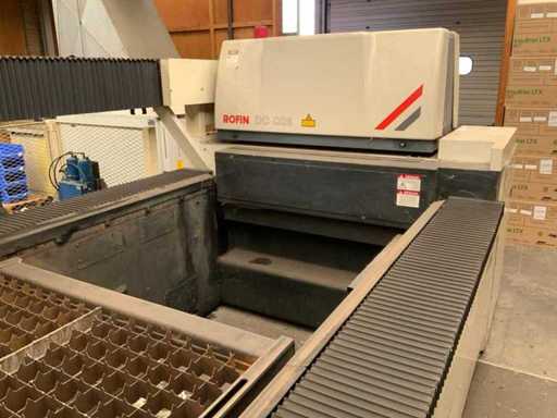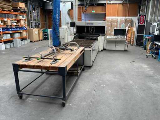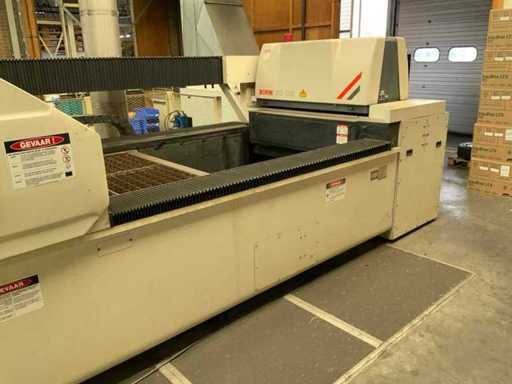 echipată cu chiusul de tăiere cu laser Precitec, acționare liniară, masă de tăiere interschimbabilă Cyclus 25 sec., 1 instalație de răcire MTA TAE evo Tech, 1 transformator DONGAN, consolă de control pentru operator și gard de siguranță. inclusiv 1 ajutor pentru ridicare a plăcilor VAGUEASYLIFT, model: 180, capacitate de ridicare: 80 kg,