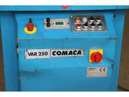 Notching machine Manufacturer: COMACA Type: VAR 250/6 Year of Make: 1996 Serial Number: 221 Capacity: 250 × 250 × 6 mm Max. sheet thickness: 6 mm Motor power: 4 kW Connection: 380 V / 50 Hz Foot pedal control available Machine weight: approx. 1200 kg Approx. dimensions: 1200 × 900 × 1250 mm