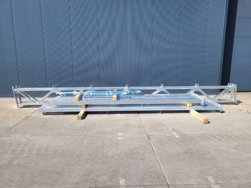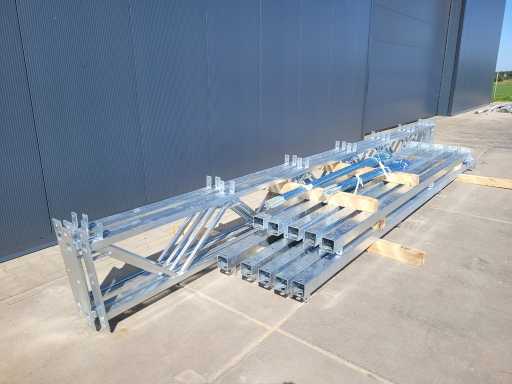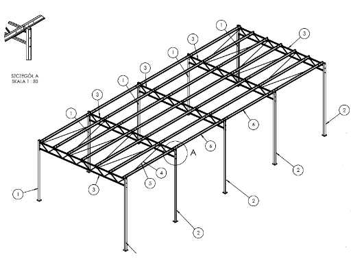 Oțel zincat; profil superior 50x50x2, profil inferior 50x50x2, contravântile transversale 30x30x2, înaltă 500, profil cutie poștală 100x100x4 înălțime 4170 și 5010, contravântuiri de acoperiș, clasa de construcție EXC2, standard EN-1090-2, protecție a suprafeței zinc la cald PN-EN ISO 1461, nu include profil Z pentru acoperiș și pereți
