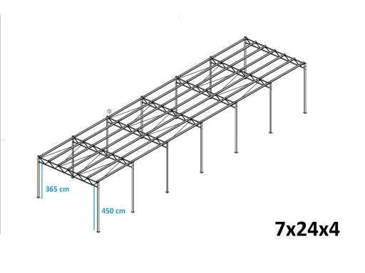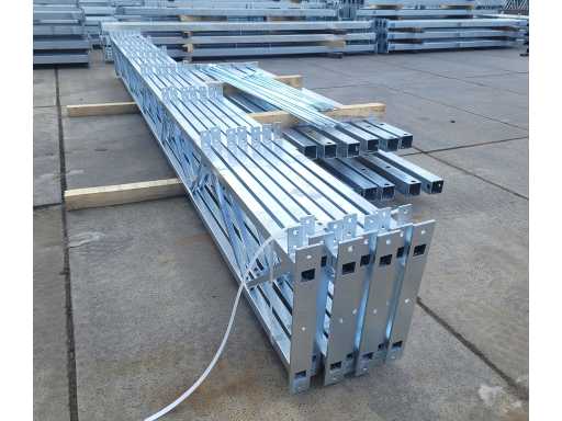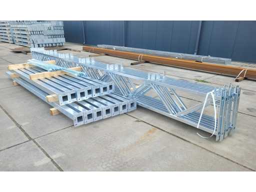 Oțel zincat; profil superior 50x50x2, profil inferior 50x50x2, contravântuiri transversale 30x30x2, înalt 500, profil cutie poștală 100x100x4 înălțime 4170 și 5010, contravântuiri de acoperiș, clasa de construcție EXC2, standard EN-1090-2, protecție a suprafeței zinc la cald PN-EN ISO 1461, nu include profil Z pentru acoperiș