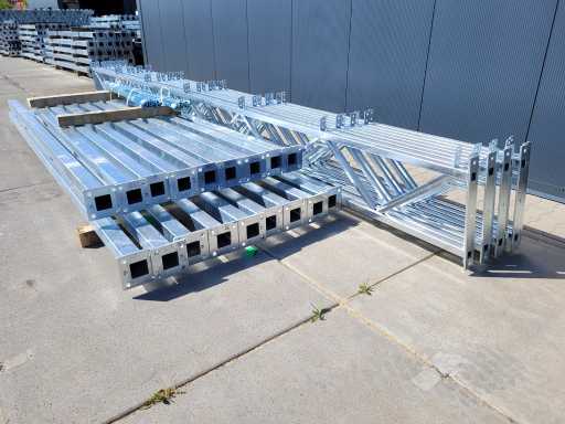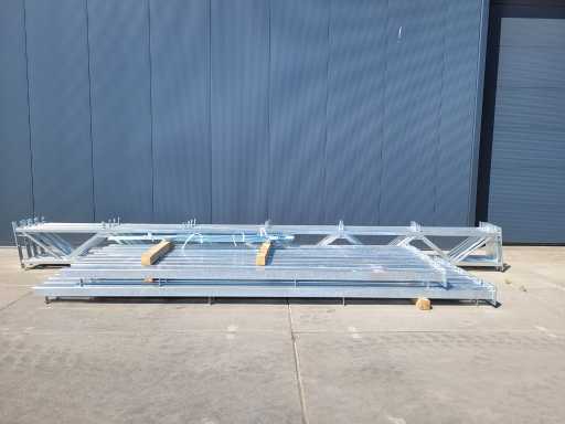 Oțel zincat; profil superior 50x50x2, profil inferior 50x50x2, contravântuiri transversale 30x30x2, înalt 500, profil cutie poștală 100x100x4 înălțime 4170 și 5010, contravântuiri de acoperiș, clasa de construcție EXC2, standard EN-1090-2, protecție a suprafeței zinc la cald PN-EN ISO 1461, nu include profil Z pentru acoperiș