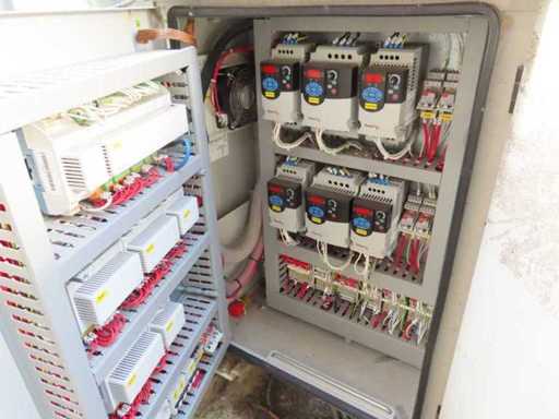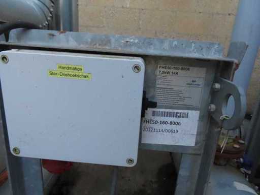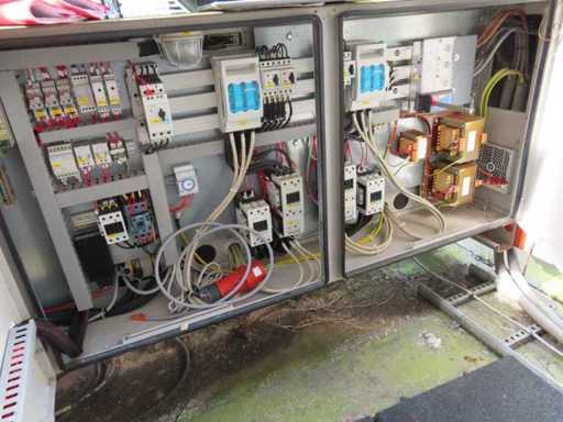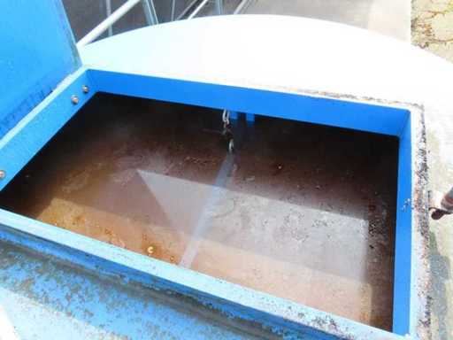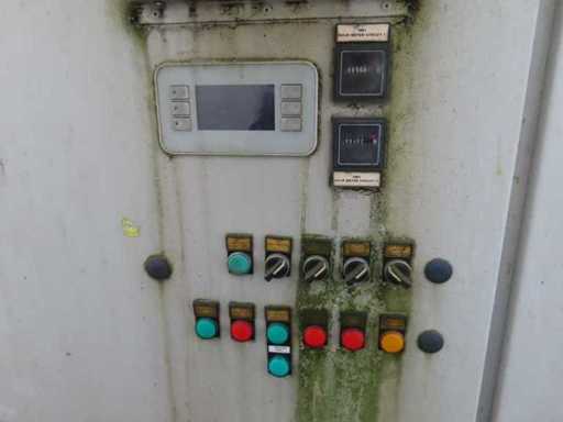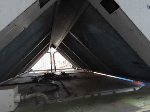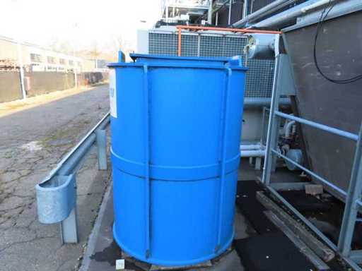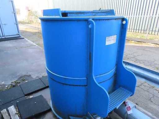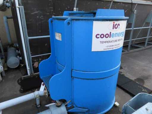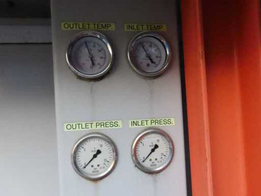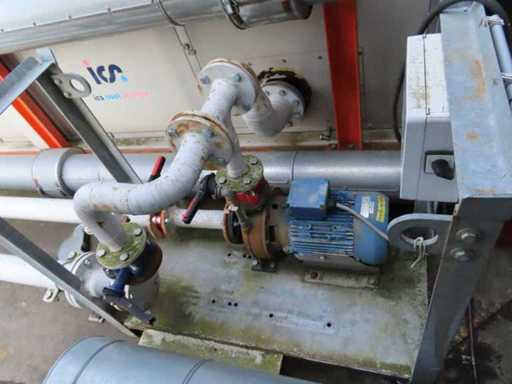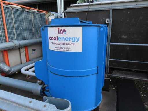 Mașină de răcire cu apă în cadrul de transport cu furcă pentru stivuitor, rezervor tampon (cu conținut) - dimensiuni: aproximativ: 165x120 (hxdia), pompă de circulație, capacitate de răcire: 136 kW. Se spune că conținutul butoiului de bufet conține glicol de apă. Dacă vasul nu poate rămâne închis în timpul deconectării, conținutul trebuie pompat și colectat de cupru. Pompa și containerul (IBC) trebuie aranjate chiar de cumpărător.