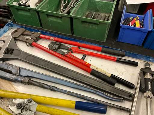 inclusiv: cheia franceză Gedore; clești nituri oarbe Gisepa; foarfece pentru tăierea cablului; cleștele de sertizare; 2x foarfece de tăiere cu șurub; cheia reglabilă;