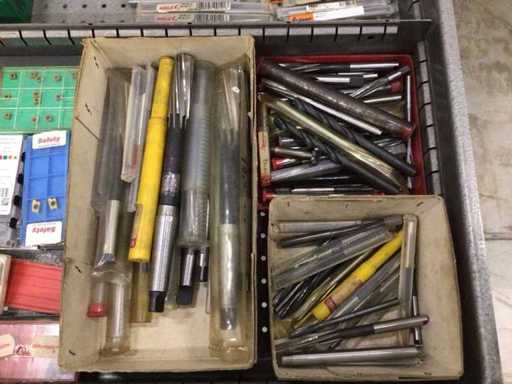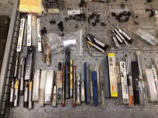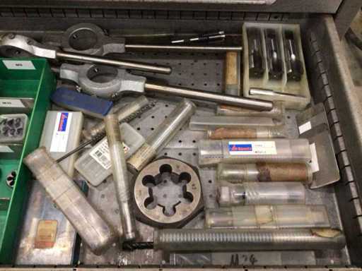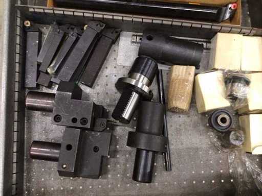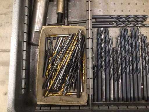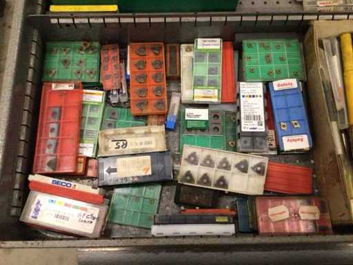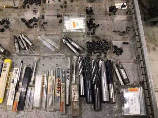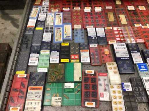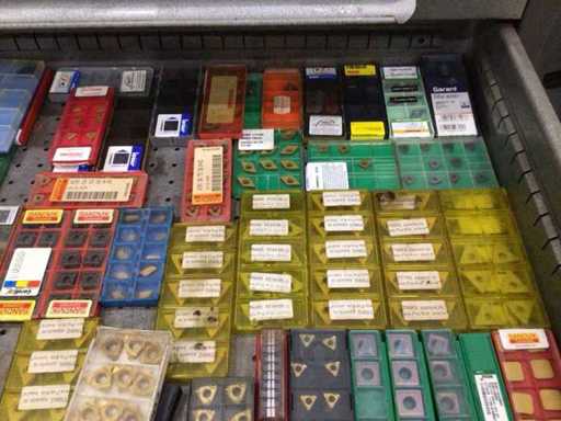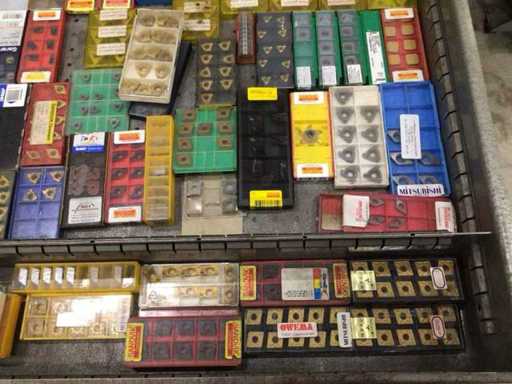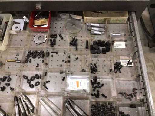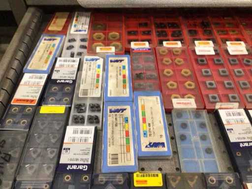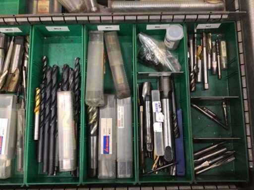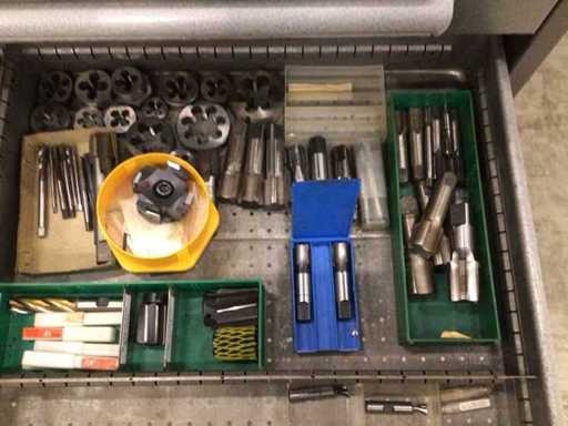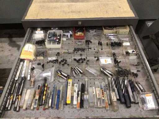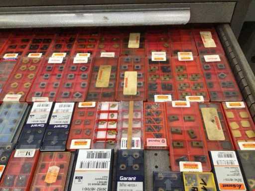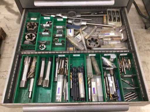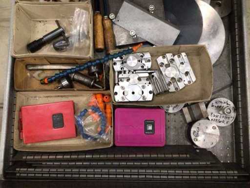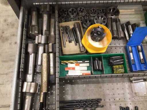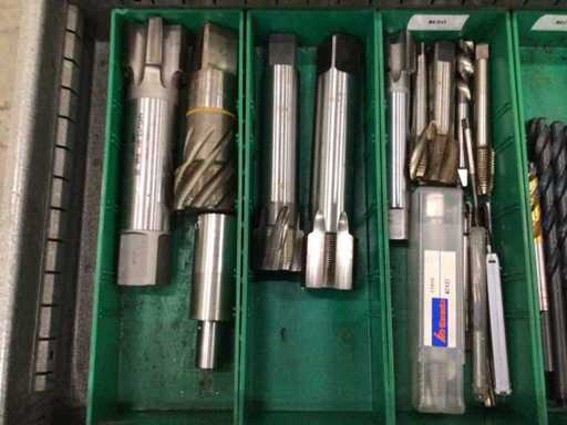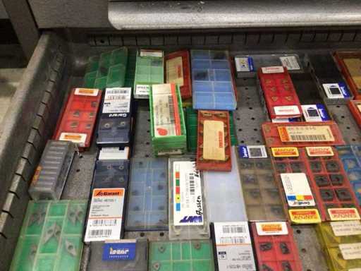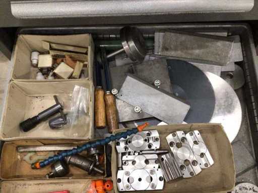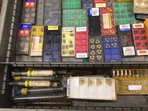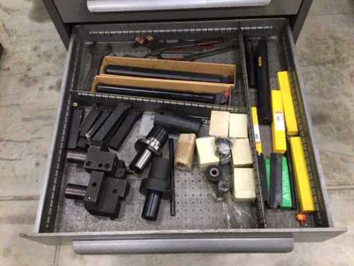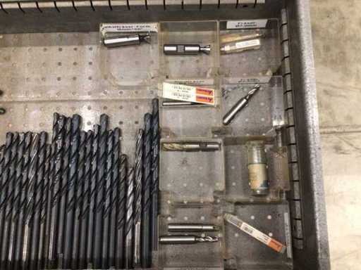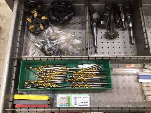 Dulap de scule cu accesorii din carbură, accesorii pentru prelucrarea metalelor, burghie etc.