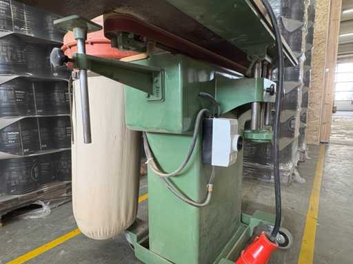 • Stationary edge sander with fixed abrasive belt and solid cast construction