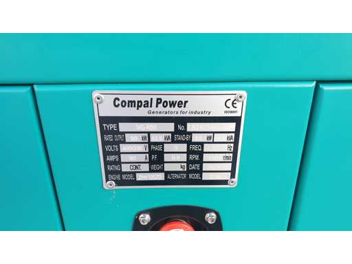 COMPAL POWER GENERATOR ELECTRIC VG-R50, super silențios, aprindere electronică automată, motor Ricardo cu 4 cilindri răcit cu apă, motor cu sistem de reducere a consumului de combustibil. Ieșiri: 220/380 volți, putere 50 kW-62,5 kVA
