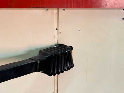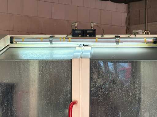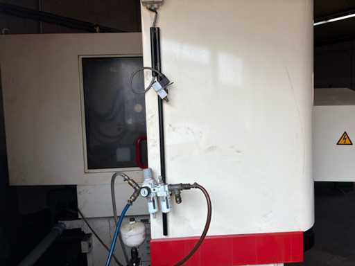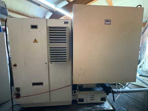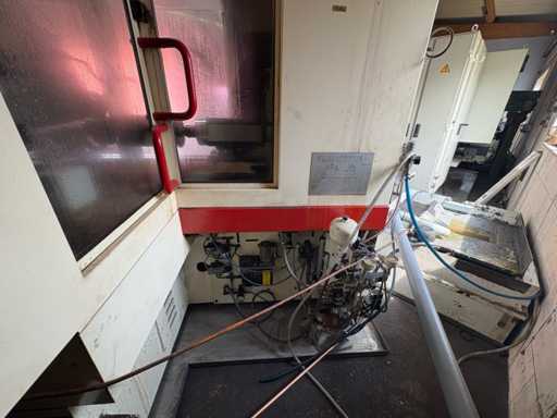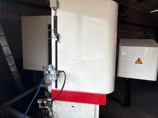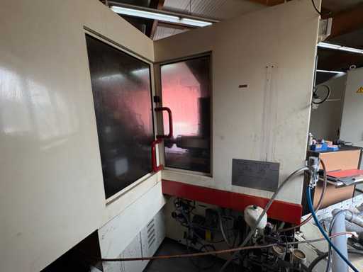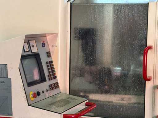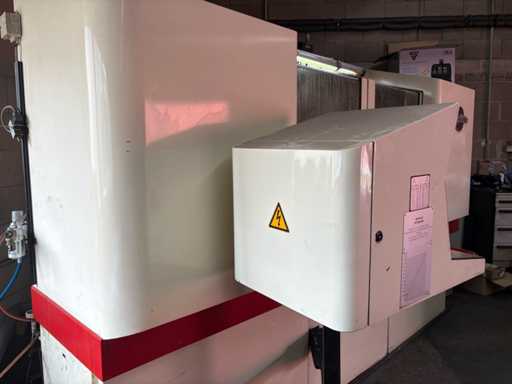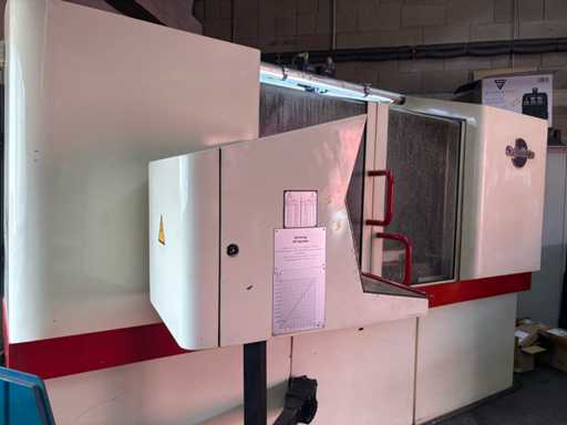 Die Maschine ist mit einer Steuerungseinheit ausgestattet, die eine benutzerfreundliche Bedienung ermöglicht. Die Steuerung ist ergonomisch am Schwenkarm angebracht, wodurch eine flexible Positionierung ermöglicht wird. Der Arbeitsbereich ist durch große Sichtfenster einsehbar und mit Doppelschiebetüren gesichert.