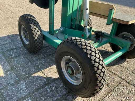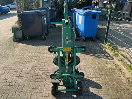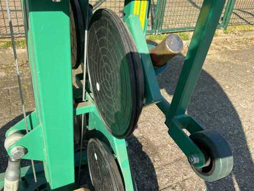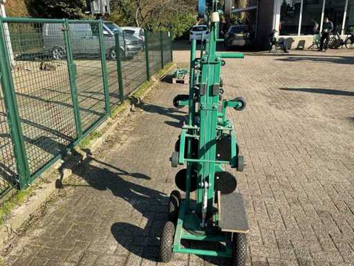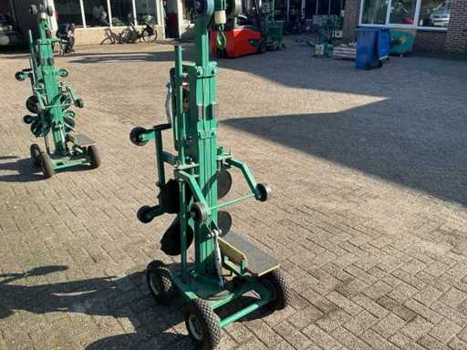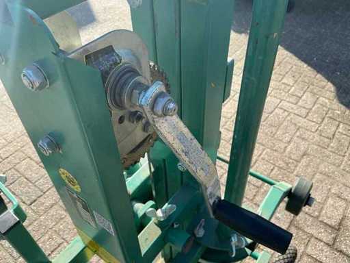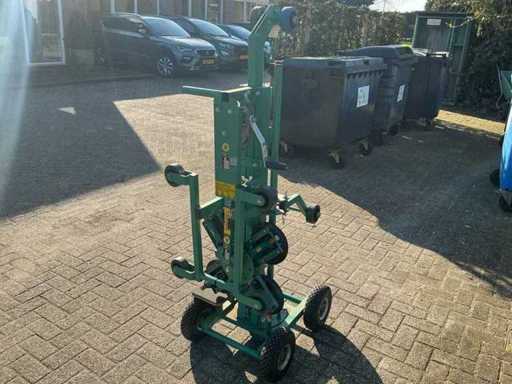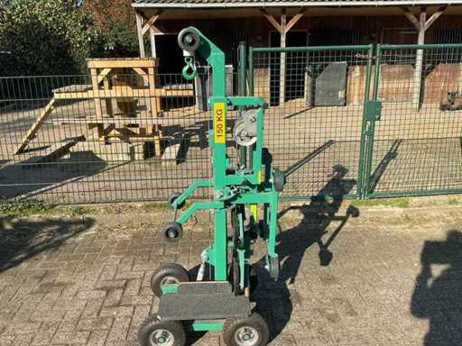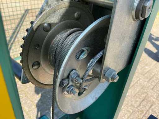 Echipat cu: Piston rotativ pentru 250 kg, mobil pe anvelope pneumatice, troliu, cablu de oțel, extensibil până la 2200mm