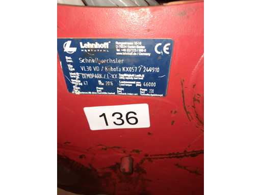 Lehnhoff quick coupler VL30, suitable for a Kubota KX057/KX060; used