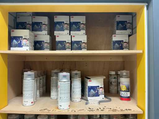Diverse cutii de pulverizare; Mască de față 10x 3M 7500 în diferite dimensiuni; Conținut 8 rafturi