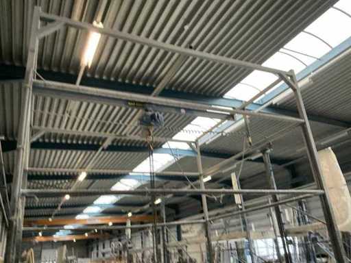Cadru mobil din oțel cu profil și un troriot cu lanț mobil (aproximativ 3400 mm) Abus.