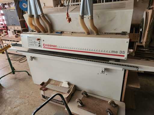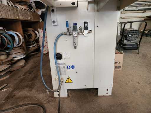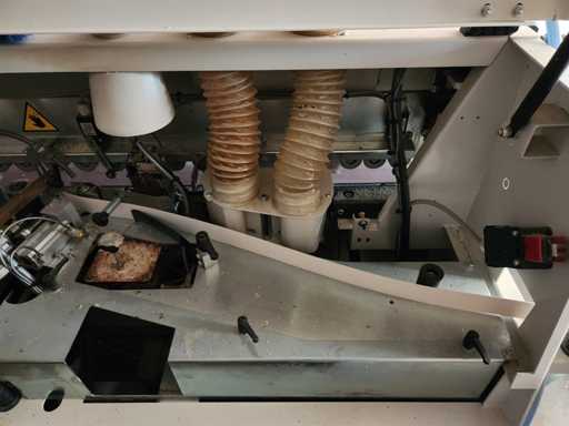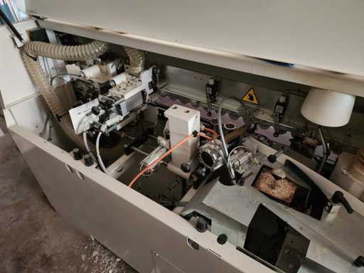, panouri de 8–50 mm, muchii de 0,4–2 mm. Lungime minimă 190 mm, lățime minimă 110 mm. Viteză înainte 7 m/min. Antrenament cu centură, dresser pe margini, tăietor pneumatic, lipire de 1 kg cu cutii, 2 role de marouflaj. Tăietură de top de 125 mm 12000 rpm, la nivel sus/jos, raclete drepte și rază. Contoare digitale Siko. Aspirație Ø60–80 mm. Putere totală: 19 A. Greutate: 550 kg. Dimensiuni: 3315 × 1450 × 1300 mm.