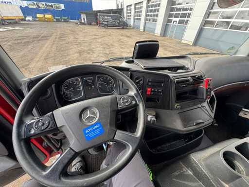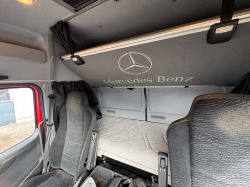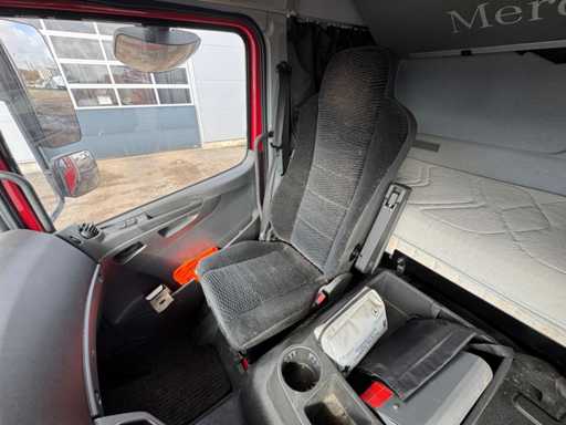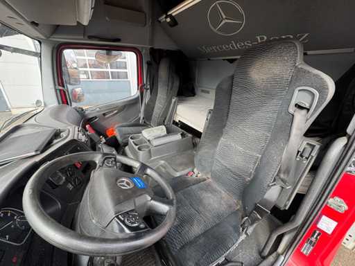 Other features: EURO 6 emission standard Axle configuration: 4x2 Axle load front axle 4.1 t Start-up/front mirror Exhaust tailpipe to the center of the vehicle Exterior mirrors electr. adjustable, left Compressed air tank steel Compressed air unit low Single-stage entry Driving assistance system: Active Brake Assist Driving assistance system: Lane departure warning Cab: L BigSpace Suspension: Leaf/Air Suspension: Front springs 3.4 t Generator 100 A Transmission 6-speed - Type: G 90-6 Urea tank (AdBlue): 25 Ltr. Rear axle ring gear 325 Info display 10.4 cm with additional display Bodywork: Chassis, Engine 5.1 Ltr. - 170 kW Diesel (OM 934) Engine compartment encapsulation, Disc brakes front and rear axle Seat cover / upholstery: Fabric Seats in the cab: single passenger seat, fixed Tachograph / EC recording device Rear skid plate fixed Preparation of toll collection Immobilizer