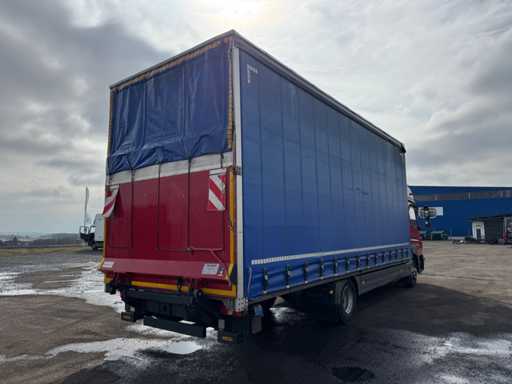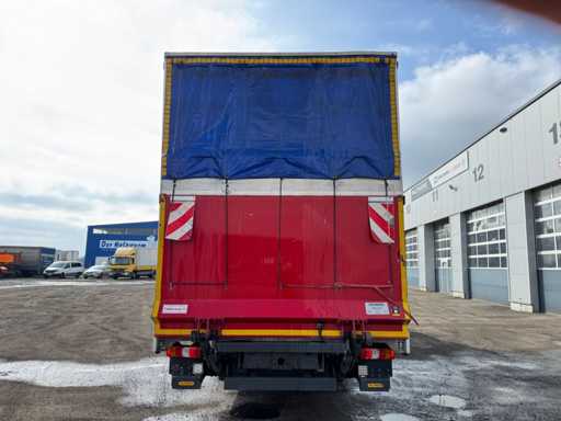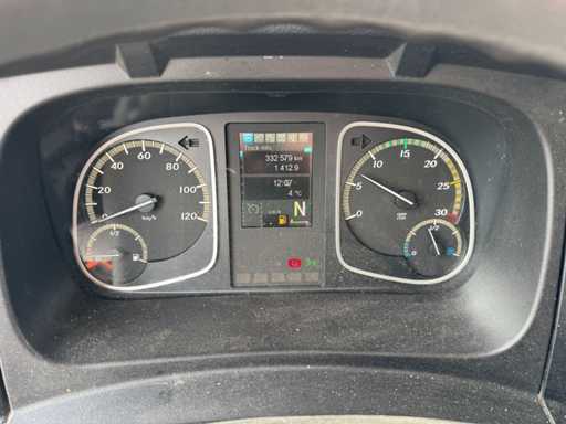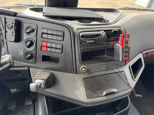 Work lights in front of rear axle (manoeuvring aid) Cockpit Comfort Differential lock rear axle Electric window regulator Lifting roof electr. (Glass) Comfort lounger at the top, wide Fuel tank: 180 Ltr. plastic LED light package Air deflector roof installation height 4.0 m Air dryer heated Engine brake reinforced Frame Overhang - Extension Tail lift switch Tail cross member for trailer coupling Circuit breaker Seats in the cab: Armrest Passenger seat Seats in the cab: Armrest Driver's seat Seats in the cab: Driver's seat suspension seat Comfort Side window blind, driver's door Stabilizer bar rear axle reinforced (for extremely high load) Steel Rims 6.75x17.5 Socket 12V / 15 A in the dashboard Additional thermal insulation Additional heating (air)