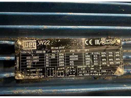Motor electric WEG, 250 kW, 2950 rpm, 400-690 Volți, IE3, greutate aprox. 1530 kg, neutilizat
