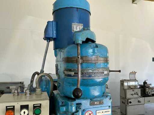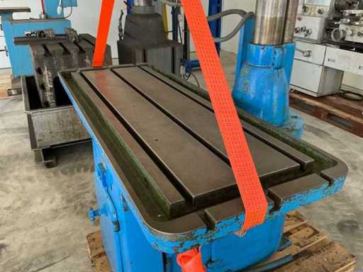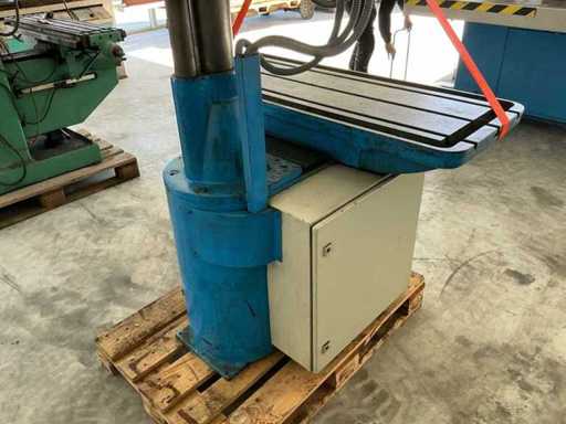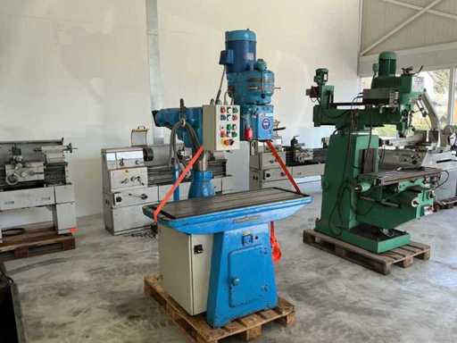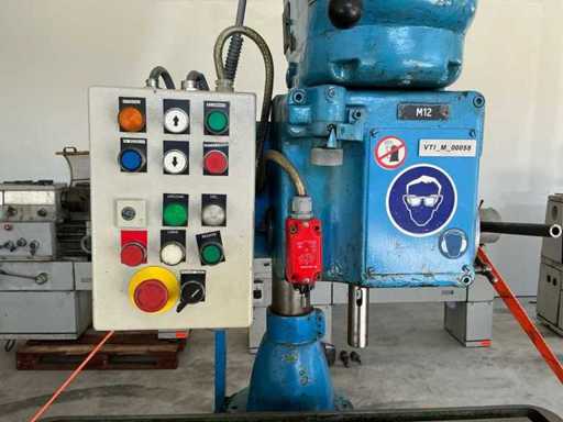 Echipat cu: Otto Müller, M12, mașină de foraj radială rapidă, conexiune: 380 V – 50 Hz, viteză comutată mecanic, braț reglabil radial, reglaj vertical al brațului de-a lungul coloanei, ax cu alimentare manuală, masă de lucru din fontă solidă cu fante în T, suport pentru axul de foraj (Morse): 30 mm, mandrin longitudinal (axa X): 750 mm, braț de deplasare în înălțime (axa Y): 350 mm, diametrul axului: 55 mm, adâncimea maximă de foraj: 125 mm, viteză: 2400 rpm, dimensiuni: 175x130x215cm (LxLxLxH), Sursa de alimentare: 380V