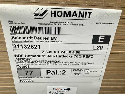 Placă de ușă Homanit HDF cu strat de aluminiu (176x)