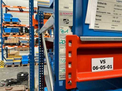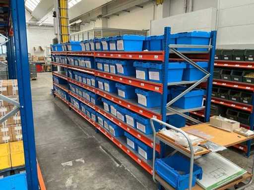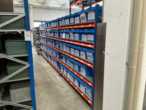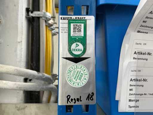 1 raft robust format din 4 suporturi, aprox. 800x2000 mm; 30 ferme, aprox. 2140 mm, fără conținut, inclusiv lăzi goale din plastic