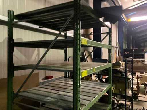 2 stâlpi verticali de 250x110 cm; și 12 grinzi de 148 cm lungime; cu rafturi din oțel;