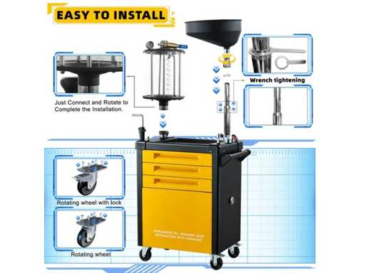 Recipient pentru scurgere a uleiului cu 3 sertare, dulap pentru unelte pentru mecanici auto